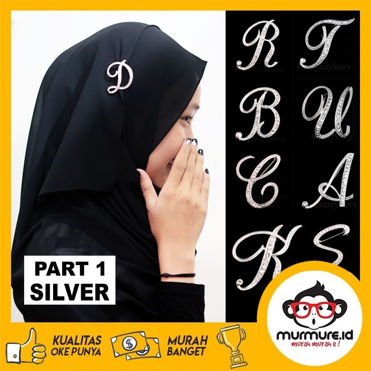 MURMURE.ID | SILVER BROS HURUF ALFABET TUSPIN HIJAB BROS NAMA JILBAB WARNA SILVER PART 1 JW026