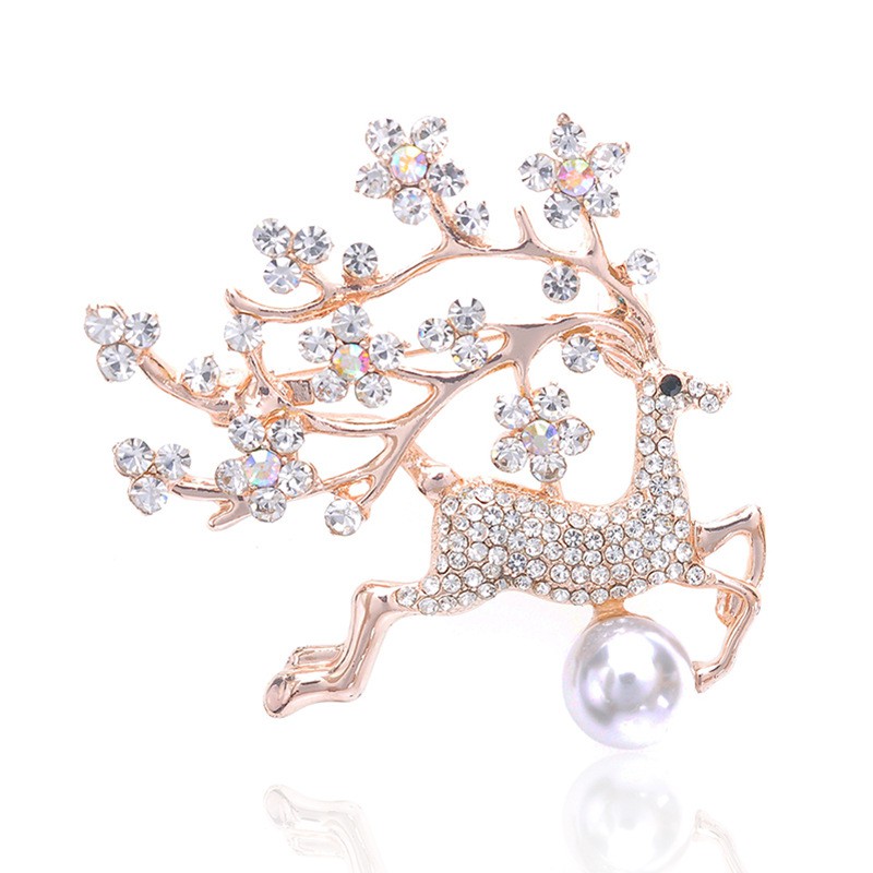 【Stok】 High-end temperamen mutiara rhinestones rusa bros korea brilian berlian mengkilap rose gold perak mutiara rusa bros