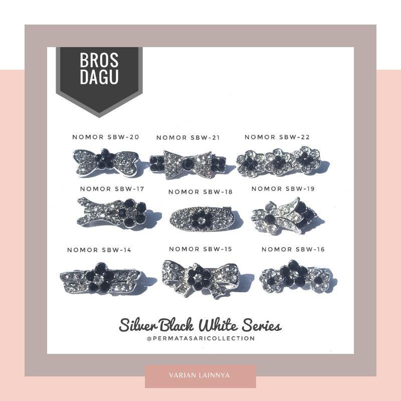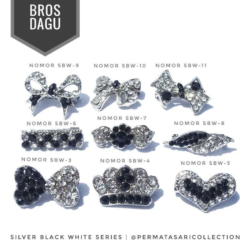 Harga Bros Dagu Korea Kecil Aksesoris Jilbab Hijab Kerudung Wanita Silver Black White Hitam Putih Small Brooch Pin Peniti Motif Bunga Pita Mutiara 1