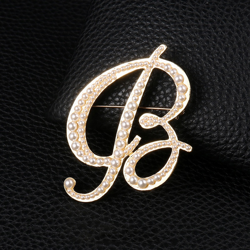 Harga Bros Pin Desain Inisial Huruf Aksen Mutiara Gaya Vintage Untuk Wanita